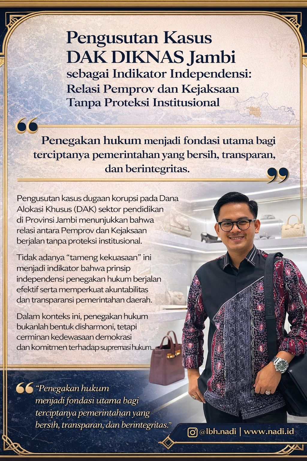Oleh: Elas Anra Dermawan, S.H. (Founder LBH NADI) Pengusutan dugaan tindak pidana korupsi pada Dana Alokasi Khusus (DAK)…