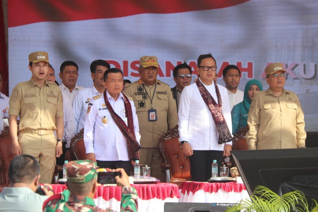 Palupinews.com – Jambi (Diskominfo Provinsi Jambi) – Gubernur Jambi Dr. H. Al Haris, S.Sos., MH mengapresiasi pemilihan Ketua RT serentak yang berlangsung aman, damai dan kondusif di Kota Jambi. Pelantikan Ketua Rukun Tetangga (RT) Se-Kota Jambi Periode 2025-2030 sebanyak 1.650 orang ini dihadiri langsung Wakil Menteri Dalam Negeri Republik Indonesia Dr. Bima Arya Sugiarto, S.IP., MA, bertempat di Lapangan Kantor Wali Kota Jambi, Kota Jambi, Rabu (21/05/2025).